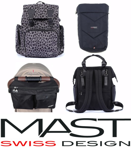 Do wózków z kolekcji MAST Swiss Design możemy dobrać praktyczne plecaki (z matą do przewijania), torby, osłony, pokrowce i śpiworki. Każde z nich jest wykonane w największej dbałości o detale. Plecaki i torby są tak atrakcyjne, że mogą nam posłużyć do innych celów.